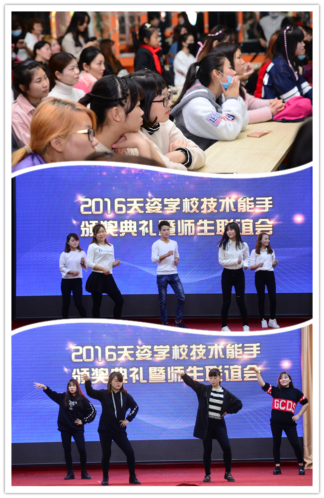 2016年11月4日,天姿技術(shù)能手頒獎典禮暨師生聯(lián)誼會順利舉行,現(xiàn)場節(jié)目精彩紛呈,激情四溢。